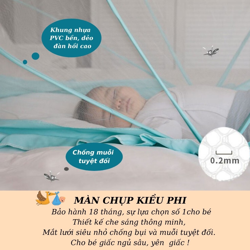 ⭐️ Màn chụp cho bé Kiều Phi thiết kế lưới chống muỗi, côn trùng là loại lưới 3D thoáng khí, giúp không khí bên trong màn thông thoáng khi sử dụng.