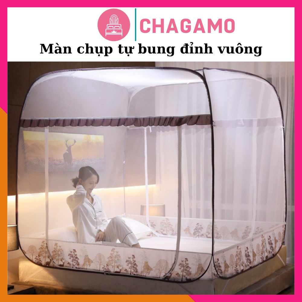 Mùng chụp tự bung chống muỗi gấp gọn tiện dụng - Màn chụp tự bung đỉnh vuông người lớn trẻ em - CHAGAMO