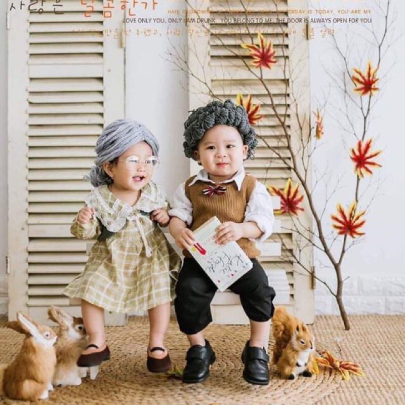 mũ tóc giả cho bé concept chụp ảnh studio