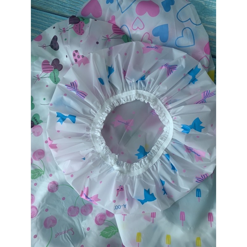 - Chất liệu nhựa mềm không thấm nước với vành mũ co giãn, vừa vặn với nhiều kích cỡ đầu, loại tóc.