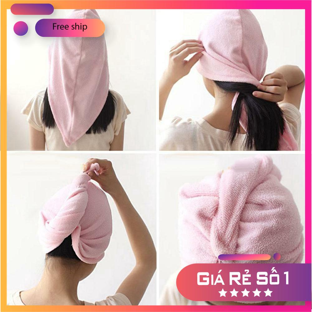 Làm ráo tóc bằng khăn bông trước - sản phẩm khăn trùm đầu giúp tóc khô dần mà không phải sấy hạn chế hư tổn cho tóc và tránh cảm.