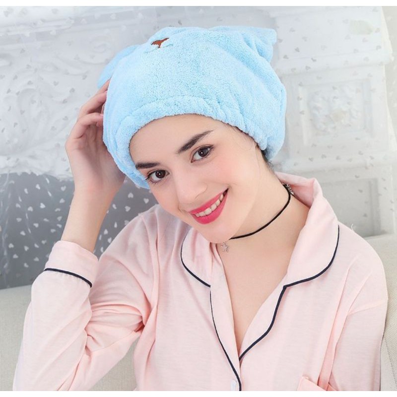 Nhà cửa & Đời sống > Đồ dùng phòng tắm > Khăn mặt, khăn tắm, áo choàng tắm > Khác || Mũ Trùm Đầu Làm Khô Tóc Hình Gấu Dễ ThươngCòn hàng