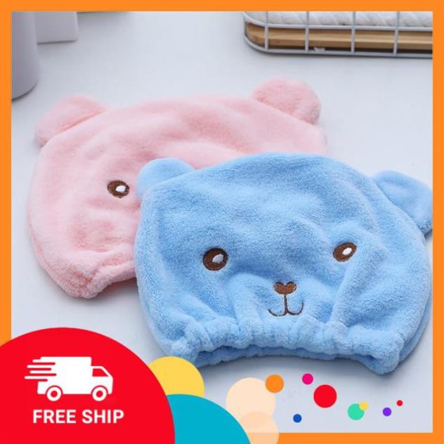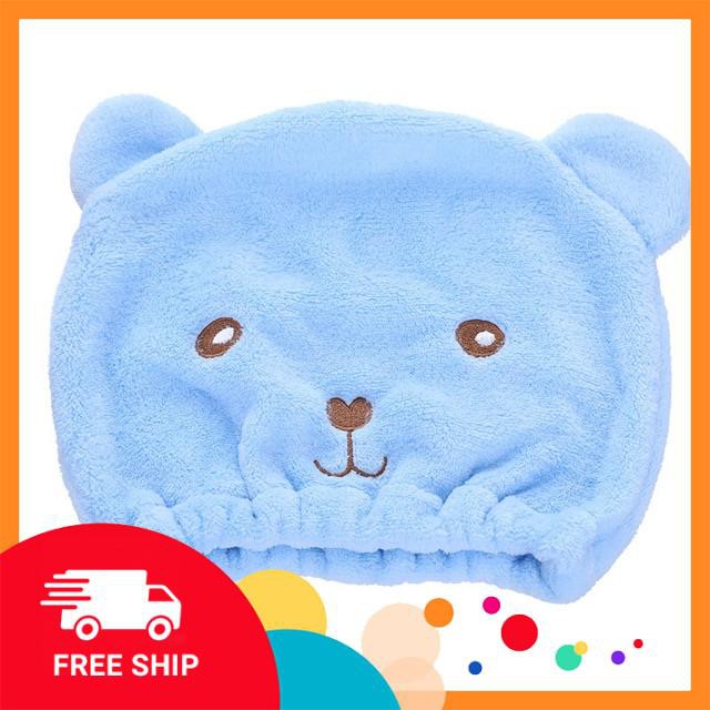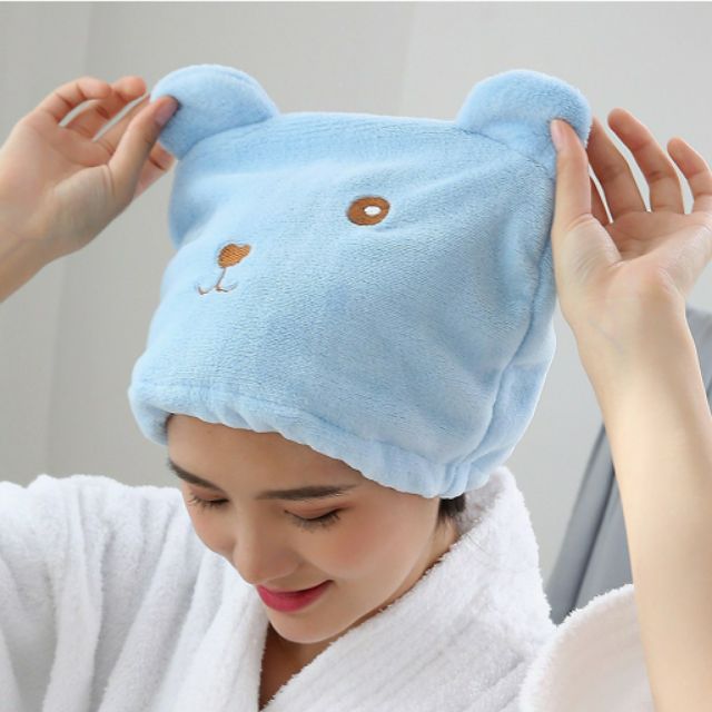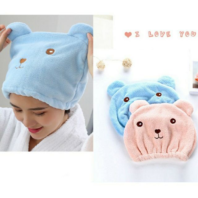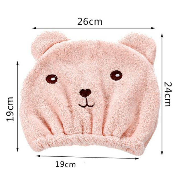 - Khăn mũ trùm đầu khô tóc hình gấu 26cm làm khô tóc sau tắm thấm hút tốt giúp bạn lau khô tóc một cách nhanh chóng.
