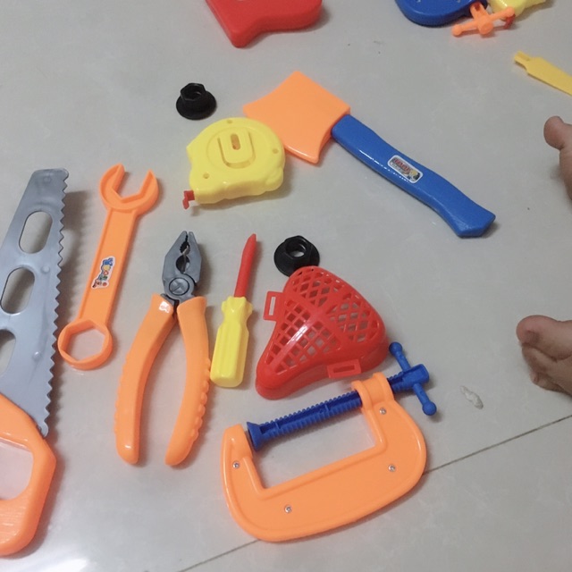 - đầy đủ các vật dụng của 1 chú công nhân chính thống như: kìm, búa, cưa, ốc vít...