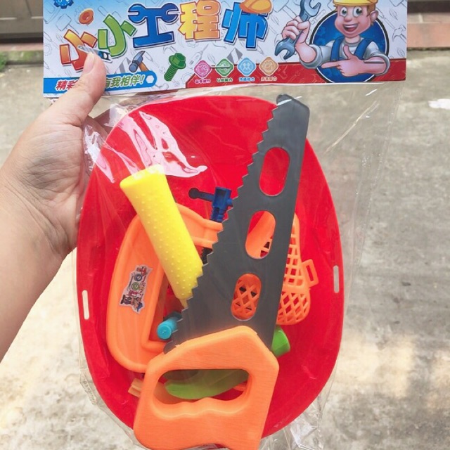 Với đầy đủ các vật dụng và mũ bảo hộ lao động, bé hoàn toàn có thể nhập vai thành 1 chú công nhân nhé bố mẹ- tất cả đều được làm từ nhựa an toàn