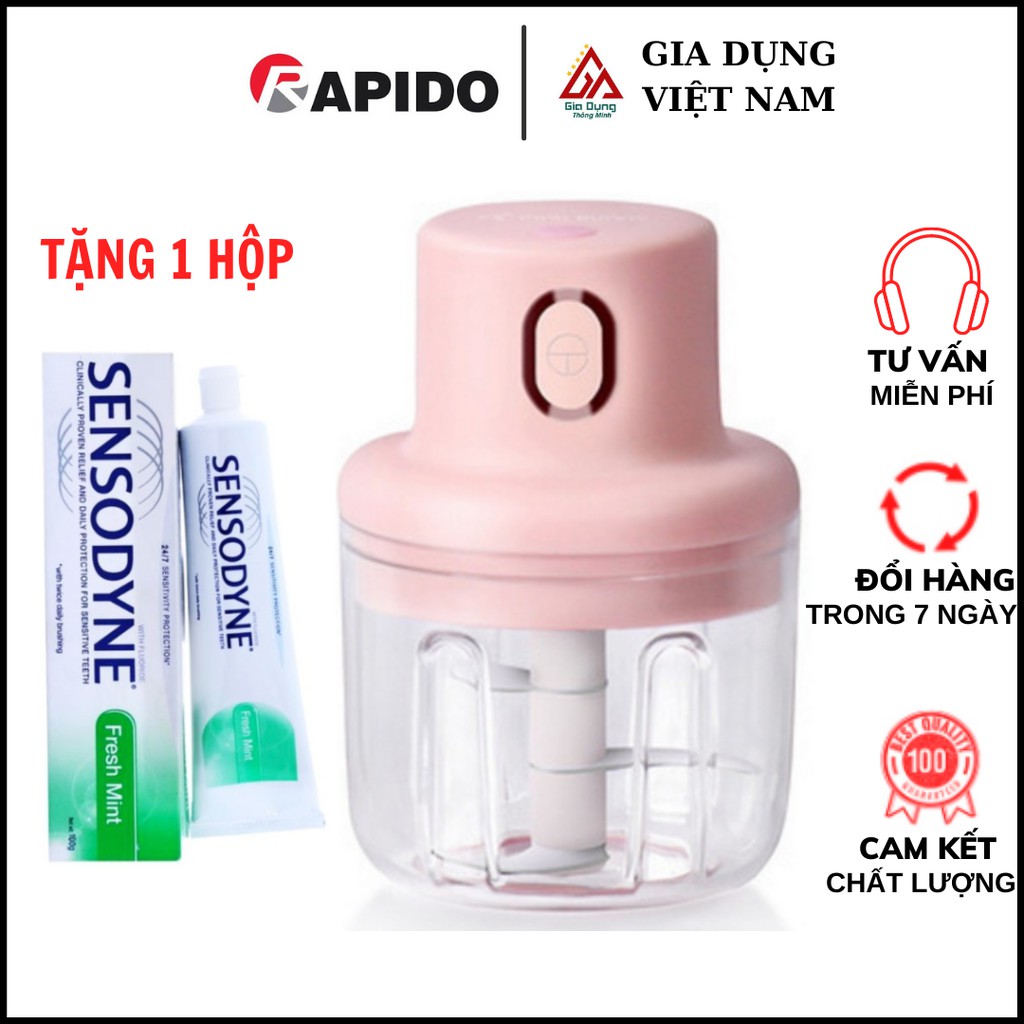 [MUA 1 ĐƯỢC 2] Máy Xay Mini Sạc Điện, Có Cổng Sạc Usb, Xay Hành, Tỏi, Rau Củ Quả (Tặng 1 tuýp kem đánh răng)