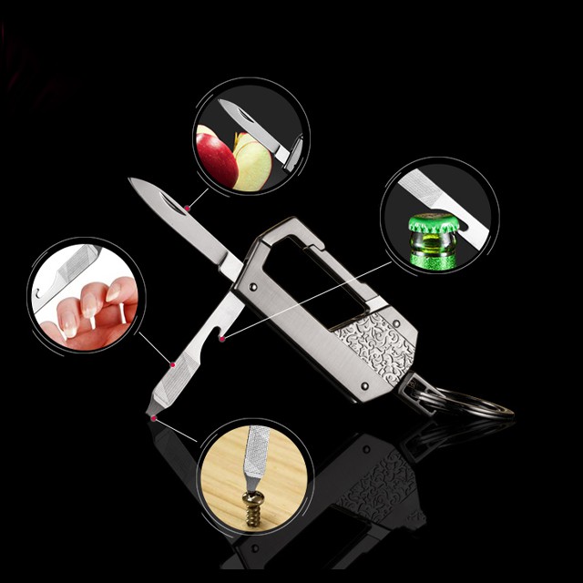 – Tiện ích: móc khóa, cài thắt lưng, Móc Treo Đỉa Quần, Mở Nắp Chai - Dũa Móng Tay - Gọt Vỏ - Tháo Vít
