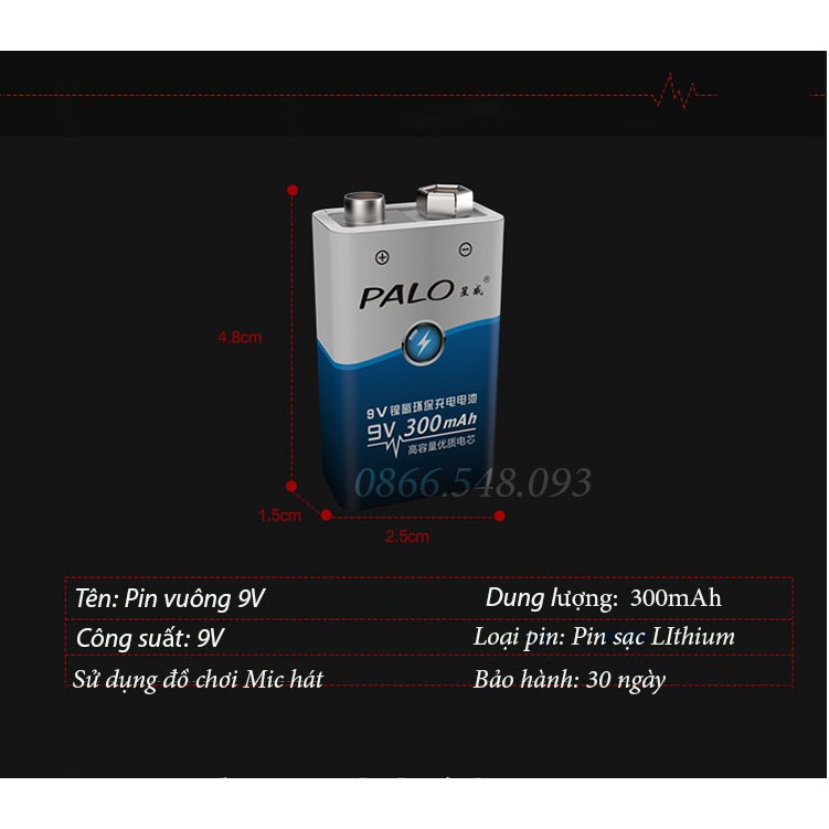 [Mua 1 tặng 1] Bộ 2 pin sạc vuông 9V PALO dung lượng 300mAh Tặng hộp đựng pin chính hãng