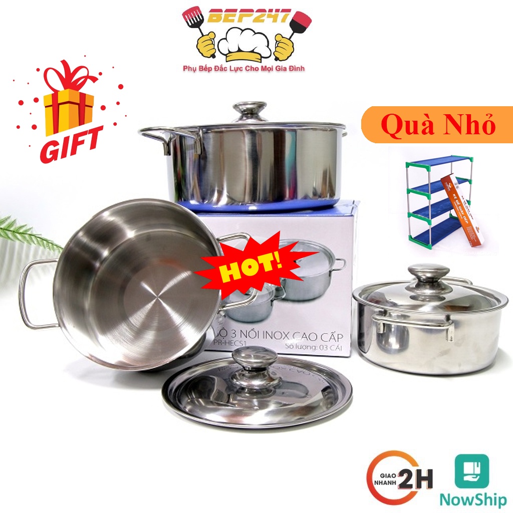Nhà cửa & Đời sống > Dụng cụ nhà bếp > Nồi || [MUA 1 TẶNG 1] Bộ 3 Nồi Inox Cho Mọi Loại Bếp, Chất Liệu Inox 410 Dày 0.4mm - Bộ Nồi Sharp - Nồi Đa NăngCòn hàng