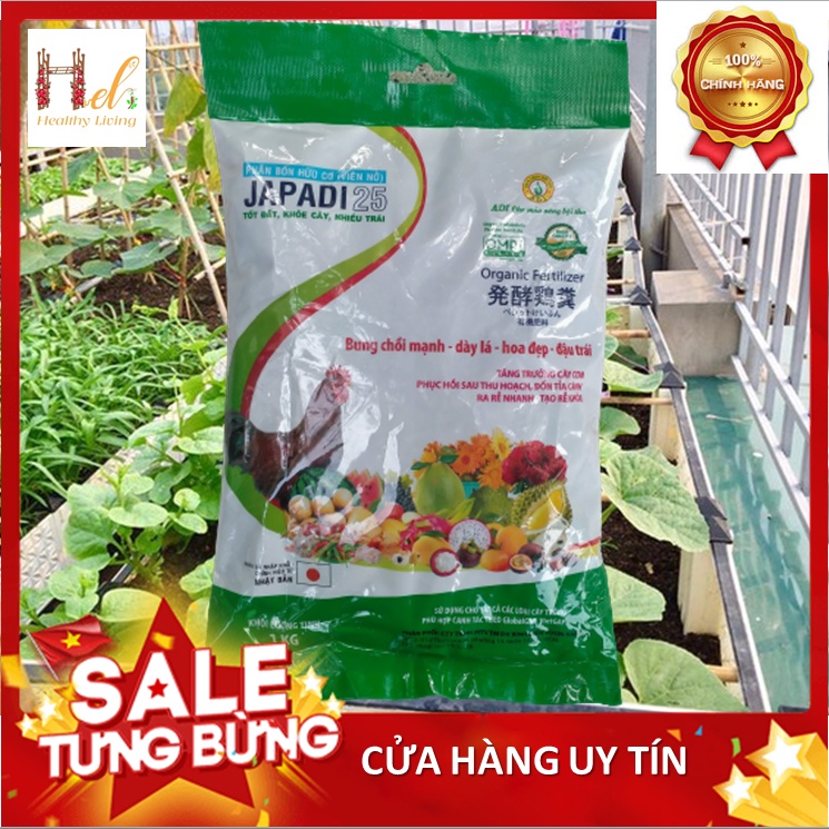 Nhà cửa & Đời sống > Làm vườn > Phân bón || [Mua 2 giảm 15%] Phân Bón Hữu Cơ Phân Gà Viên Nở Nhật Bản Japadi 1KG- Trồng Hạt Giống Rau Củ Quả Bằng Đất Sạch, Xơ DừaCòn hàng