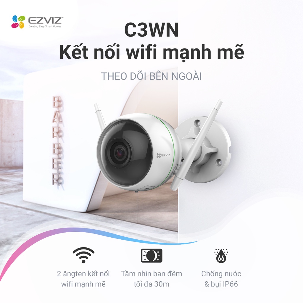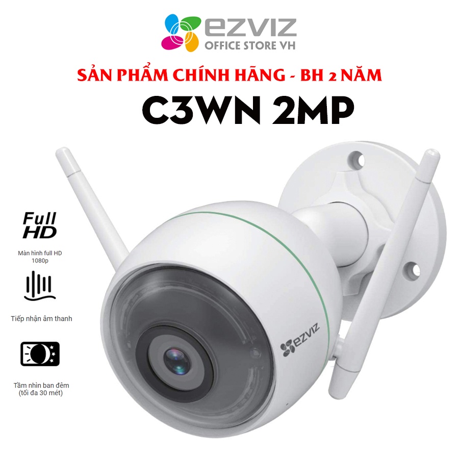 Giới thiệu [MUA 2 TẶNG 1 QUÀ EZVIZ ]Camera Wifi EZVIZ C3WN 2MP Full HD 1080P, mic thu âm, camera ngoài trời hàng chính hãng