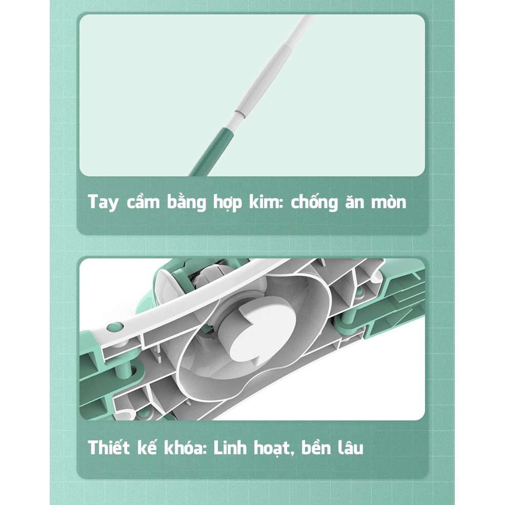 - Thiết kế xoay 360 độ giúp bạn lau được mọi ngóc ngách trong nhà mà không còn bất tiện nữa.
