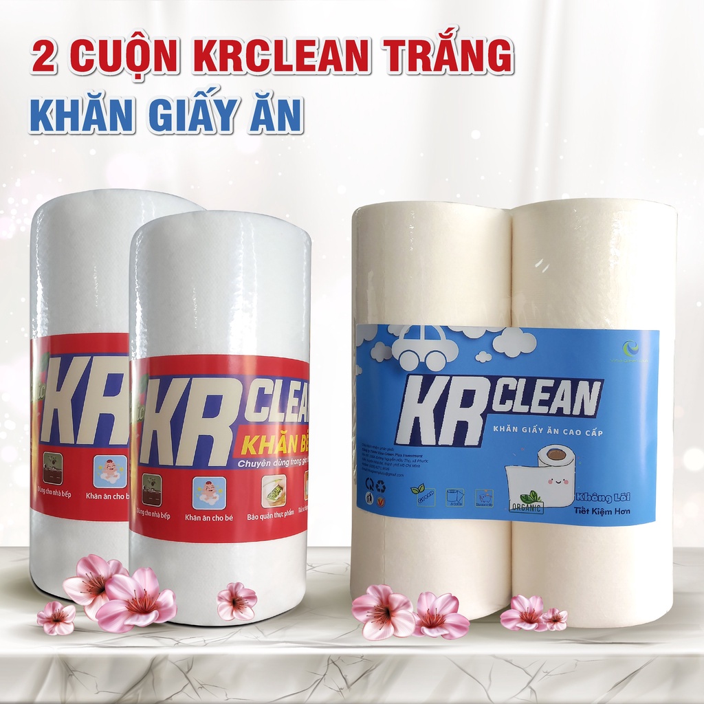 [MUA 2 TẶNG 2] Combo gồm 2 cuộn Krclean trắng 100 tờ- giấy lau bếp tờ có thể giặt được, tái sử dụng- Tặng 2 khăn ăn USA
