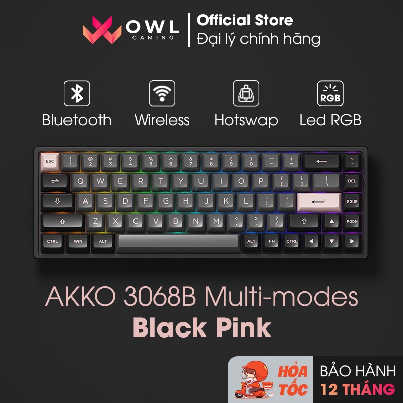 Máy tính & Laptop > Chuột & Bàn Phím > Bàn Phím Máy Tính || [Mua kèm Deal sốc] Bàn phím cơ AKKO 3068B Multi-modes Black Pink (Không dây / Hotswap / Foam tiêu âm / AKKO CS Jelly sw)Còn hàng