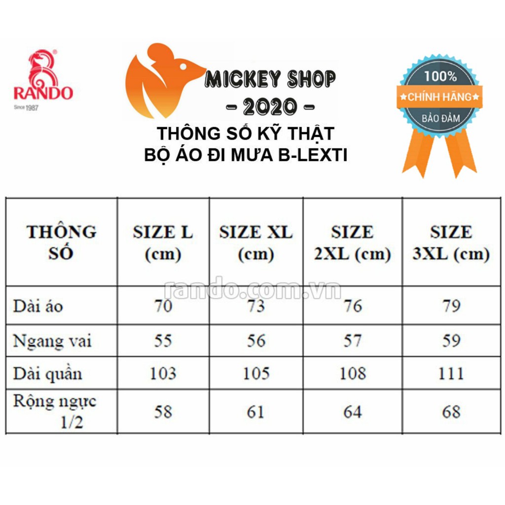 Giới thiệu [ MUA NHIỀU ] Áo mưa bộ RANDO B-LEXTI - ASNS-29 - CHÍNH HÃNG