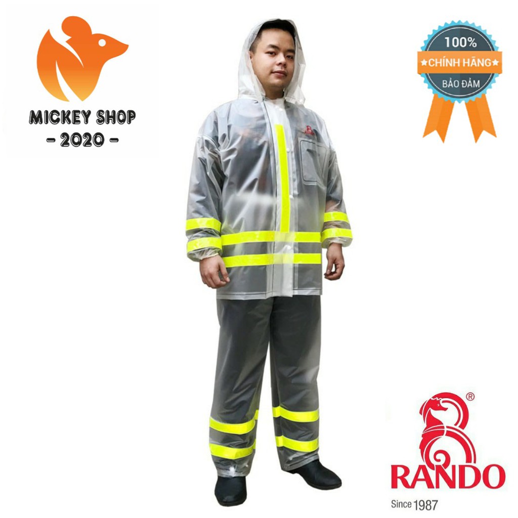 [ MUA NHIỀU ] RANDO Bộ Quần Áo Đi Mưa Nhựa PVC Trong Màu Phản Quang Chống Thấm nước, Thời Trang Cá Tính Cho Nam/Nữ - CHÍNH HÃNG- Áo Mưa Rando Chính Hãng, Bộ Quần Áo Đi Mưa Nhựa PVC Trong Màu Phản Quang Chống Thấm nước, An Toàn, Thời Trang Cá Tính Cho Nam/Nữ, Bộ áo đi mưa Trong Màu Phản Quang không chỉ giúp che mưa toàn thân mà còn là dòng sản phẩm thời trang và cá tính cho các khách hàng yêu thích sự nhẹ nhàng, mang nét thẩm mỹ khi đi trong mưa, là sản phẩm tiện ích giúp người mặc thuận tiện hơn trong những ngày mưa bão. Bộ áo mưa được thiết kế với chất liệu PVC trong mờ, nhẹ nhàng , thao tác mặc rất nhanh gọn giúp che phủ toàn bộ lớp quần áo chính của mình, người mặc sẽ được bảo vệ toàn thân, tránh được nước mưa từ mọi phía (trước, sau, trái phải)