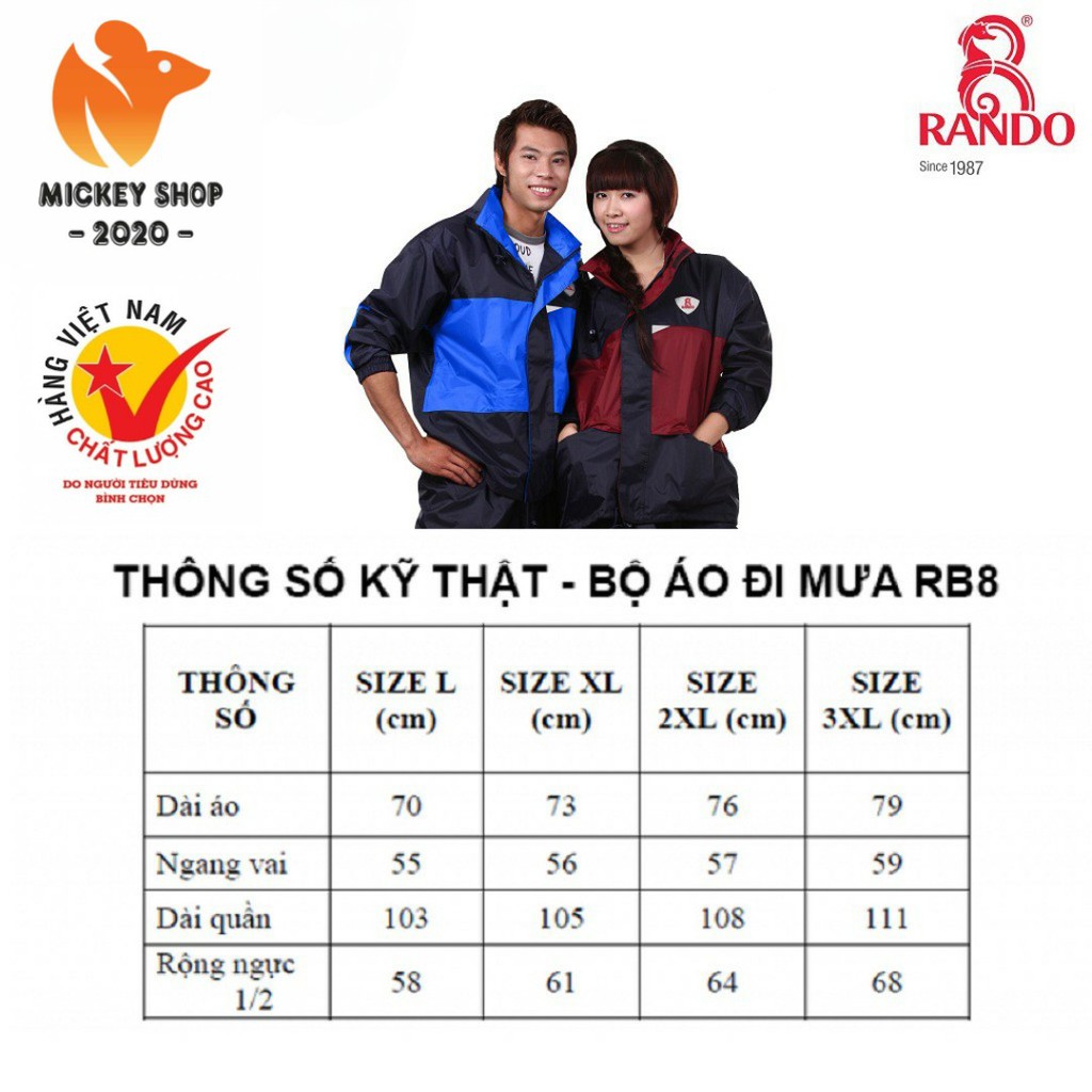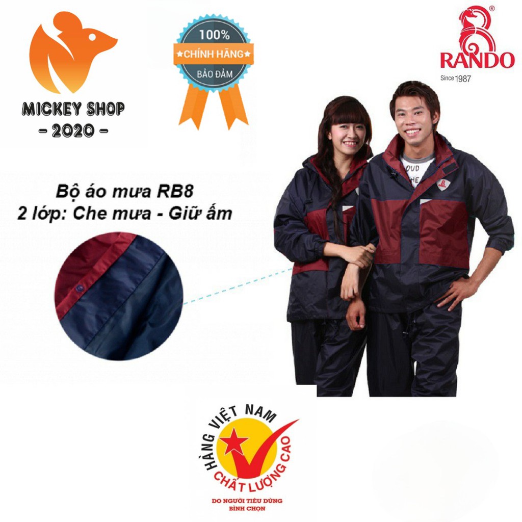 [ MUA NHIỀU] Áo Mưa Bộ Rando 2 Công Dụng RB8 – Thời Trang Đi Mưa, Ấm Áp Nhẹ NhàngMickey 2020 Shop xin giới thiệu sản phẩm Áo Mưa Bộ Rando 2 Công Dụng RB8 – Thời Trang Đi Mưa, Ấm Áp Nhẹ Nhàng đáp ứng từ nhu cầu cơ bản như che mưa và giữ ấm và là giải pháp tối ưu để bảo vệ cơ thể, đảm bảo quá trình công tác, sinh hoạt vào những ngày thời tiết mưa gió, trời rét lạnh đến nhu cầu khắc khe hơn về độ bền, đẹp và thẫm mỹ trong một bộ áo.