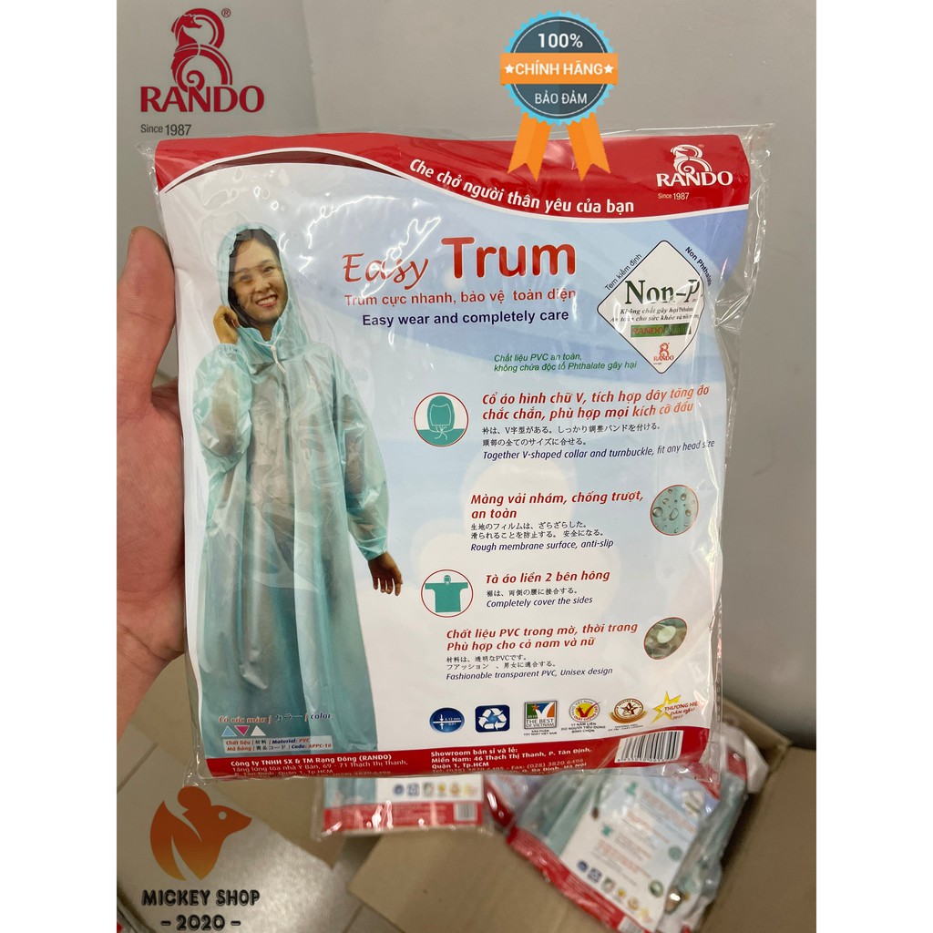 [MUA NHIỀU] Áo mưa Rando Easy Trum “Trùm cực nhanh, bảo vệ toàn diện” APPC-10Mickey 2020 Shop xin giới thiệu sản phẩm Áo mưa Rando Easy Trum “Trùm cực nhanh, bảo vệ toàn diện” APPC-10