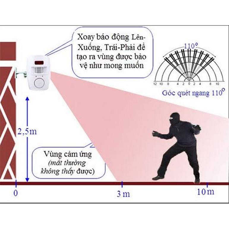 > Báo động bằng chuông khi có người di chuyển vào vùng quét