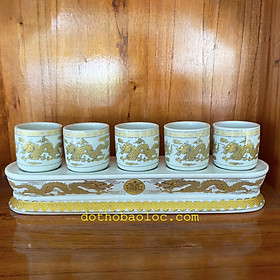 Mua Chum nước thờ sứ in hình rồng 3D cao cấp 2 loại: bộ 3 ly và bộ 5 ly