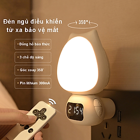 Mua Đèn ngủ điều khiển từ xa bảo vệ mắt tích hợp đồng hồ xem giờ với 3 chế độ sáng điều chỉnh độ sáng 10 cấp độ pin 300mA