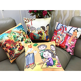 Mua Set 4 Vỏ gối vuông Tết dân gian