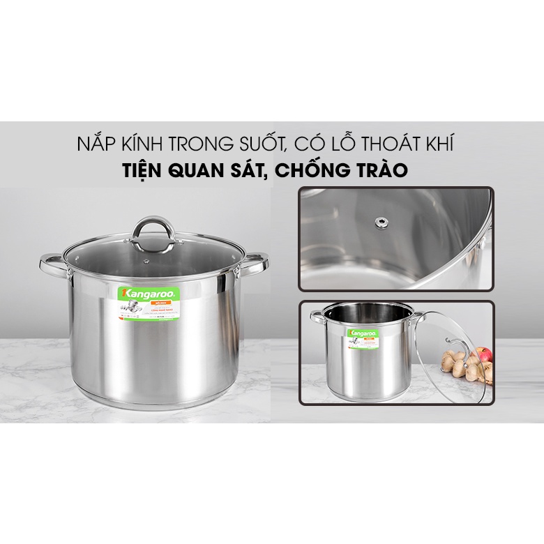 Nồi inox cao cấp 5 lớp Kangaroo KG122 size cỡ lớn 30cm, sử dụng chất liệu inox cao cấp, là thiết bị nhà bếp không thể thiếu giúp bạn chuẩn bị những món ăn ngon cho cả gia đình đông thành viên.Chất liệu inox
