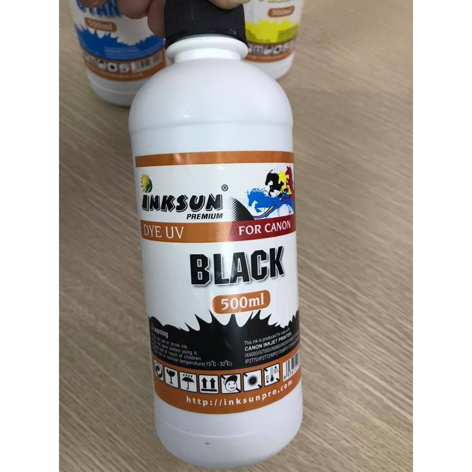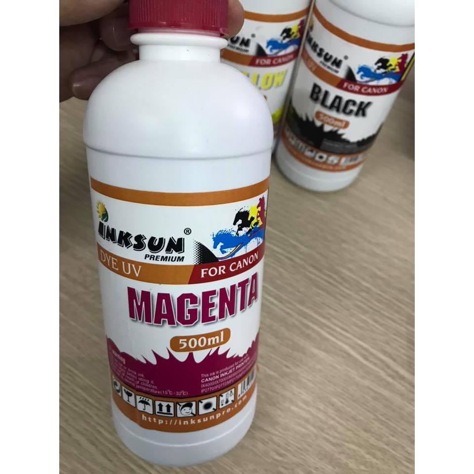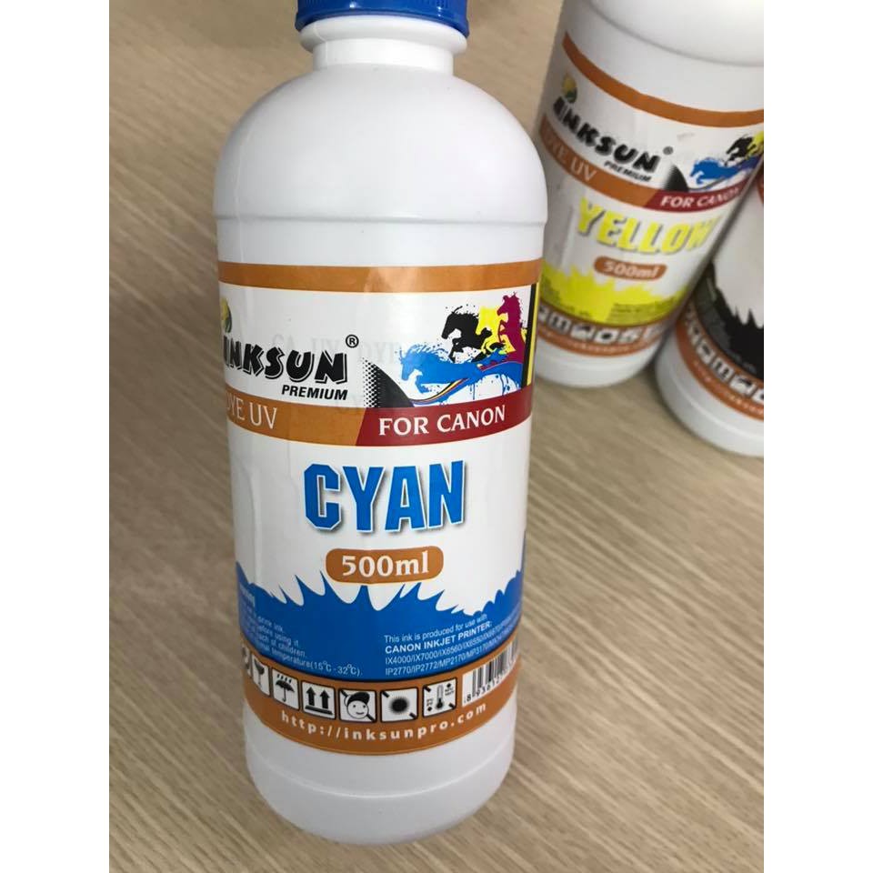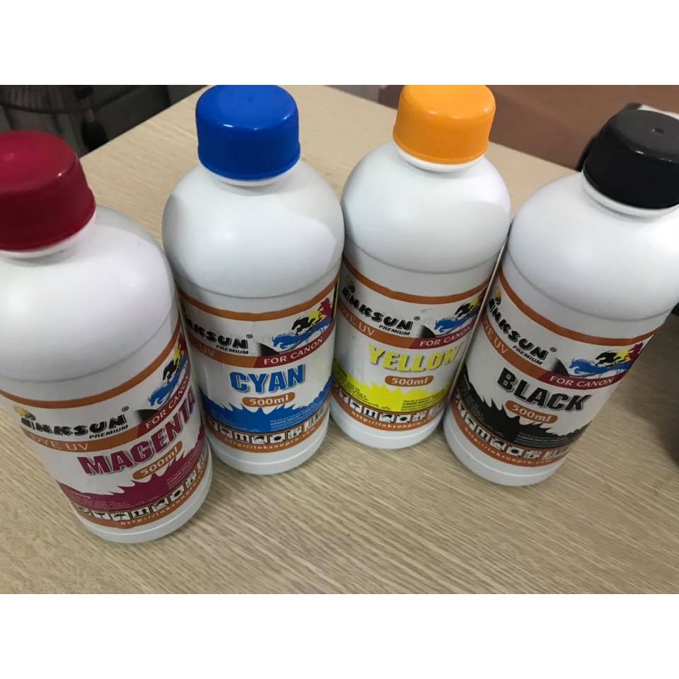 Mực Dye UV Canon là Hệ mực dạng nước, thuộc dòng mực in giá rẻ. Gồm 6 màu (Black, Cyan, Magenta, Light Cyan, Light Magenta, Yello). Dùng được cho máy 4 màu gắn hệ thống mực in liên tục, độ dẫn mực tốt, màu sắc tươi sáng, sắc nét và đặc biệt không gây hại đầu phun.
