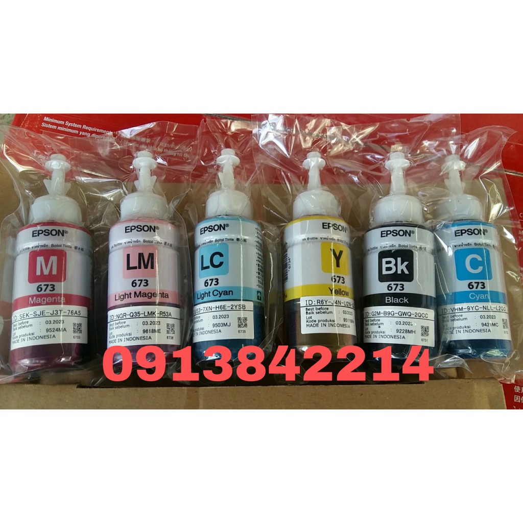 Mực 673 hàng bóc máy 6 màu rời 70ml/1 màu tuỳ chọn màu, loai đi kèm theo máy in 100% tháo máy L805/L1800 epson bao ép chân không , không võ giấy -made in indonesia -lh 0913842214 128 bùi thi xuân q1 HCMGiá BARRON