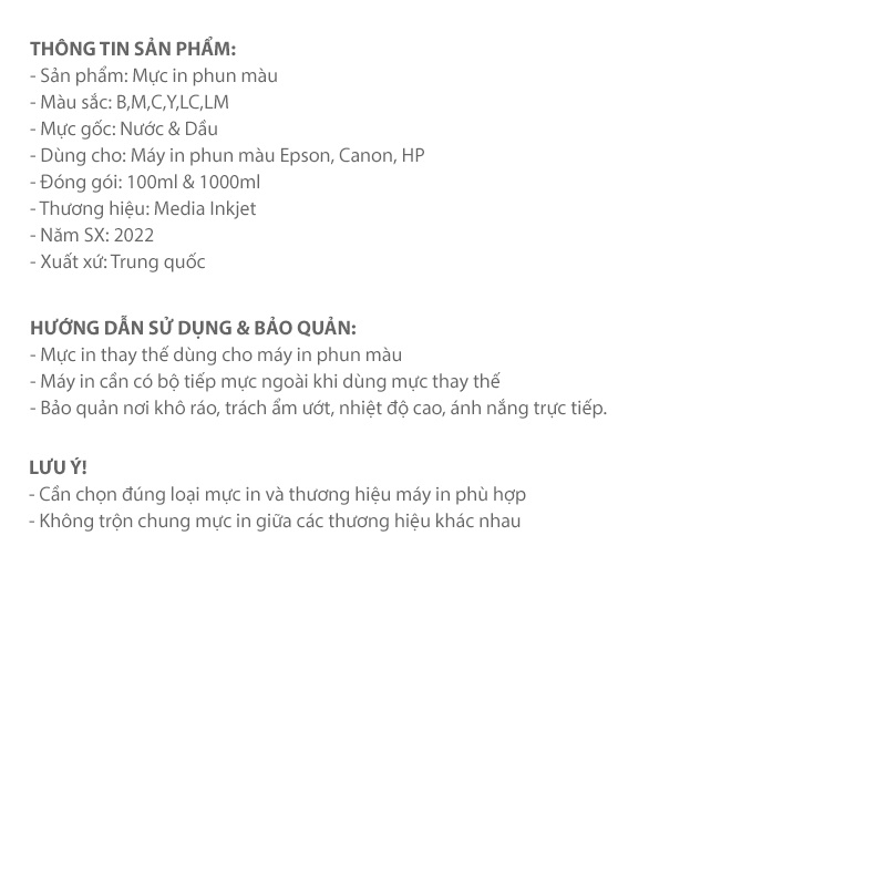Máy tính & Laptop > Máy In & Máy Scan > Mực In & Khay Mực || Mực In Phun Màu Media DYE UV Cho Máy In Canon 1000mlCòn hàng