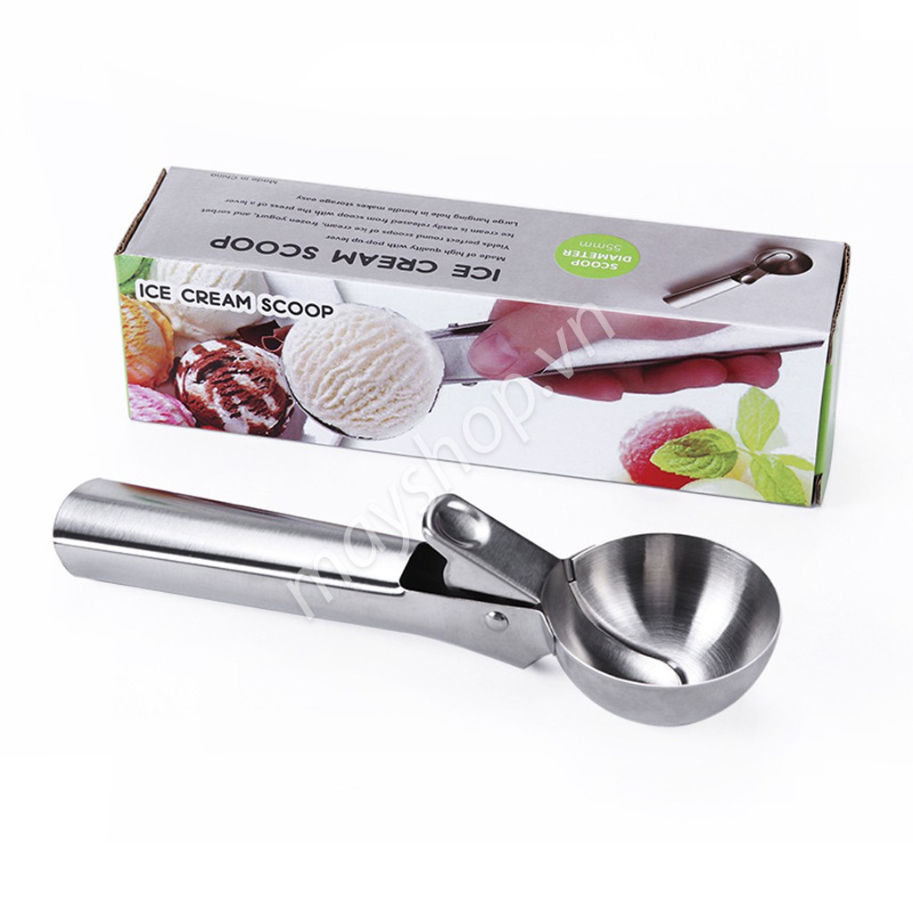 Múc kem inox kiểu bấmVật liệu inox không gỉ cao cấp.