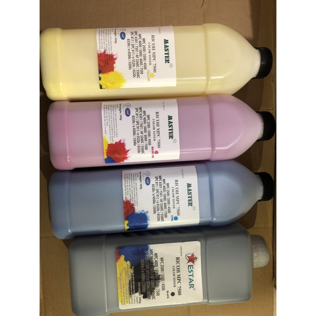 Máy tính & Laptop > Máy In & Máy Scan > Mực In & Khay Mực || Bộ mực mầu cho photo Ricoh MPC 6000/7500/ 7501/2500/3500/4500/6501- Toshiba e5520/6520/6530/e4500c/550(4 mầu)Còn hàng