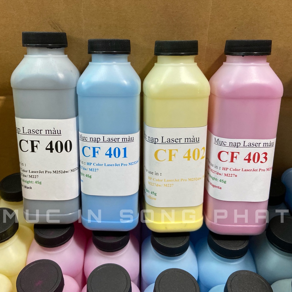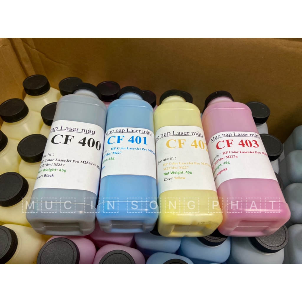 Mực nạp laser màu HP 252 - 452 - Ca.non 045-611-613-631-633 - Mực nạp CF 400 (giá tính trên 1 chai)