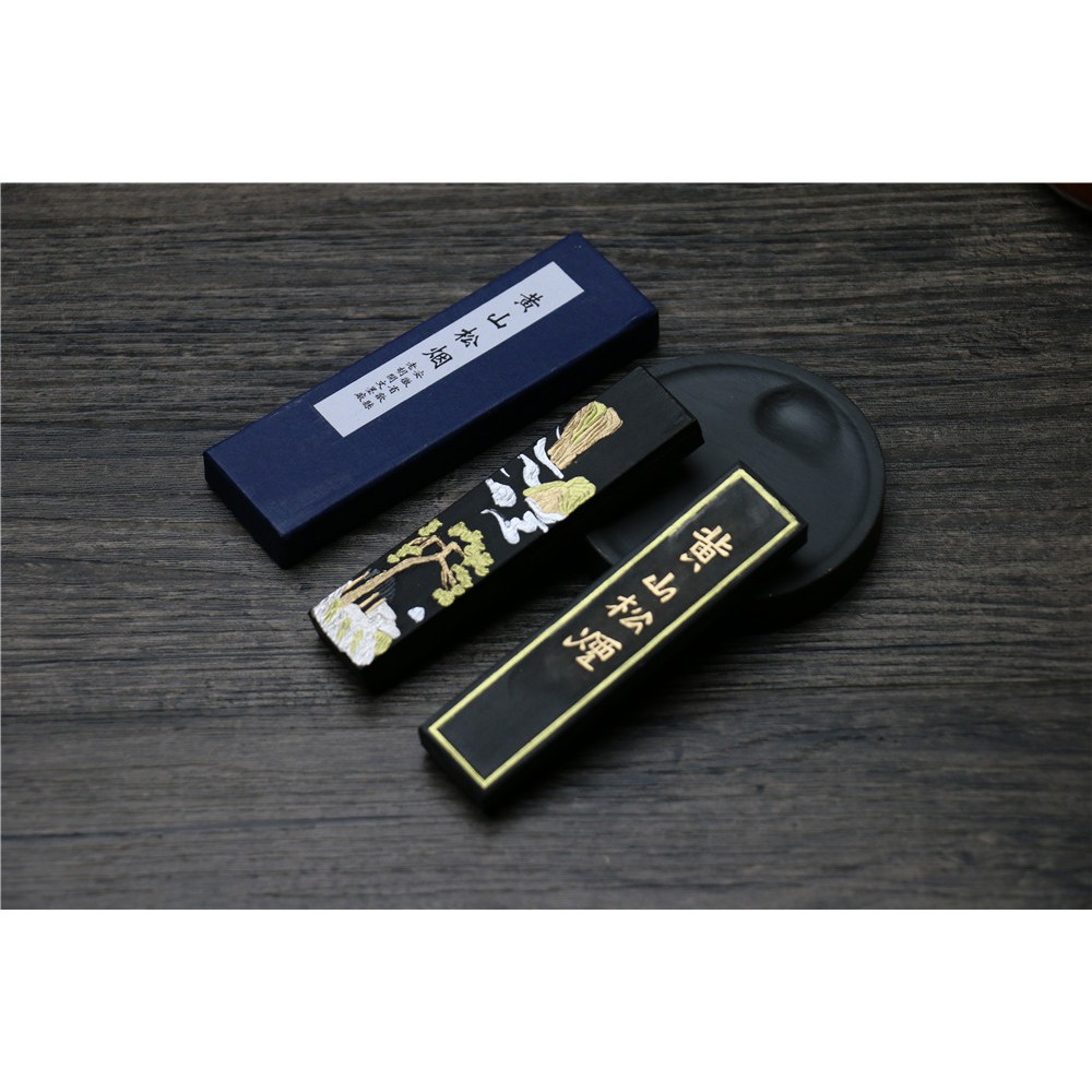 Mực thỏi Hoàng Sơn Tùng Yên được làm từ than cây tùng. Mực mài ra màu đen rất chuẩn.Kích thước: 11 x 3,4 x 1,3 cm