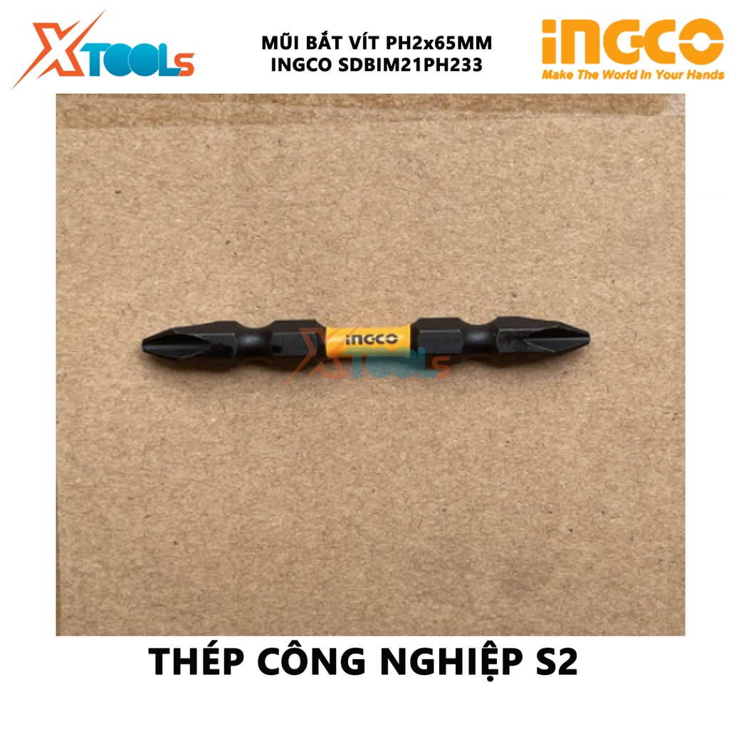 Bộ mũi bắt vít 2 đầu bake 10 chi tiết INGCO SDBIM21PH233 mũi bắt vít 2 đầu PH2 + PH2 65mm, Thép công nghiệp S2 có nam ch