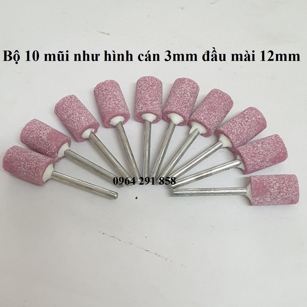 có 2 mã số lượng 5 hoặc 10 chiếcĐá mài khắc, đánh bóng hình trụ, nón trục 3mm: đầu mài 12mm