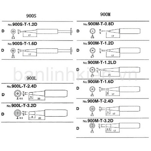 Nhà cửa & Đời sống > Dụng cụ & Thiết bị tiện ích > Dụng cụ > Khác || Mũi Hàn Hakko 900M-T-0.8D đen ( Loại tốt ) Mũi hàn thiếc tương thích với mỏ hàn 907, 936...Còn hàng