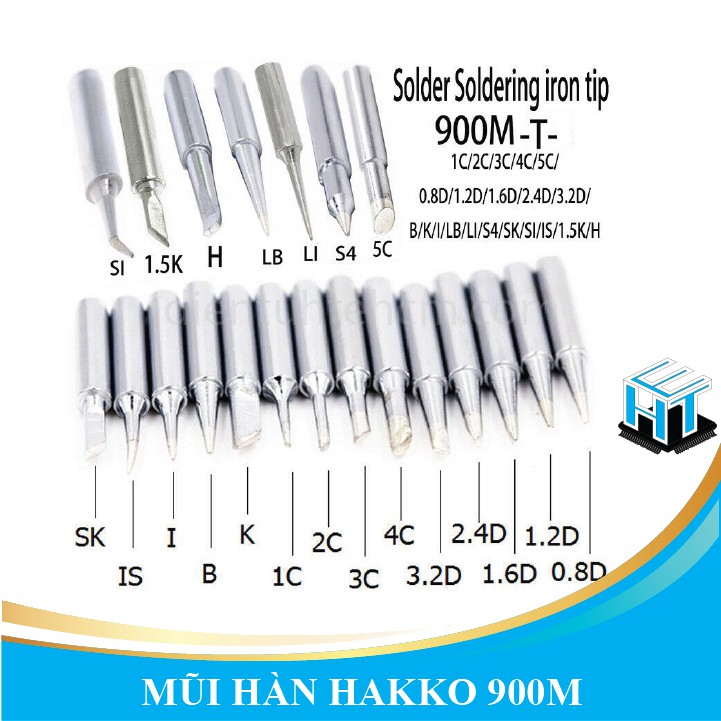Sử dụng cho mỏ hàn Hakko 936 và các loại mỏ hàn tương tự có mã hàng 936Bảng tham khảo các thông số đầu mỏ hàn: