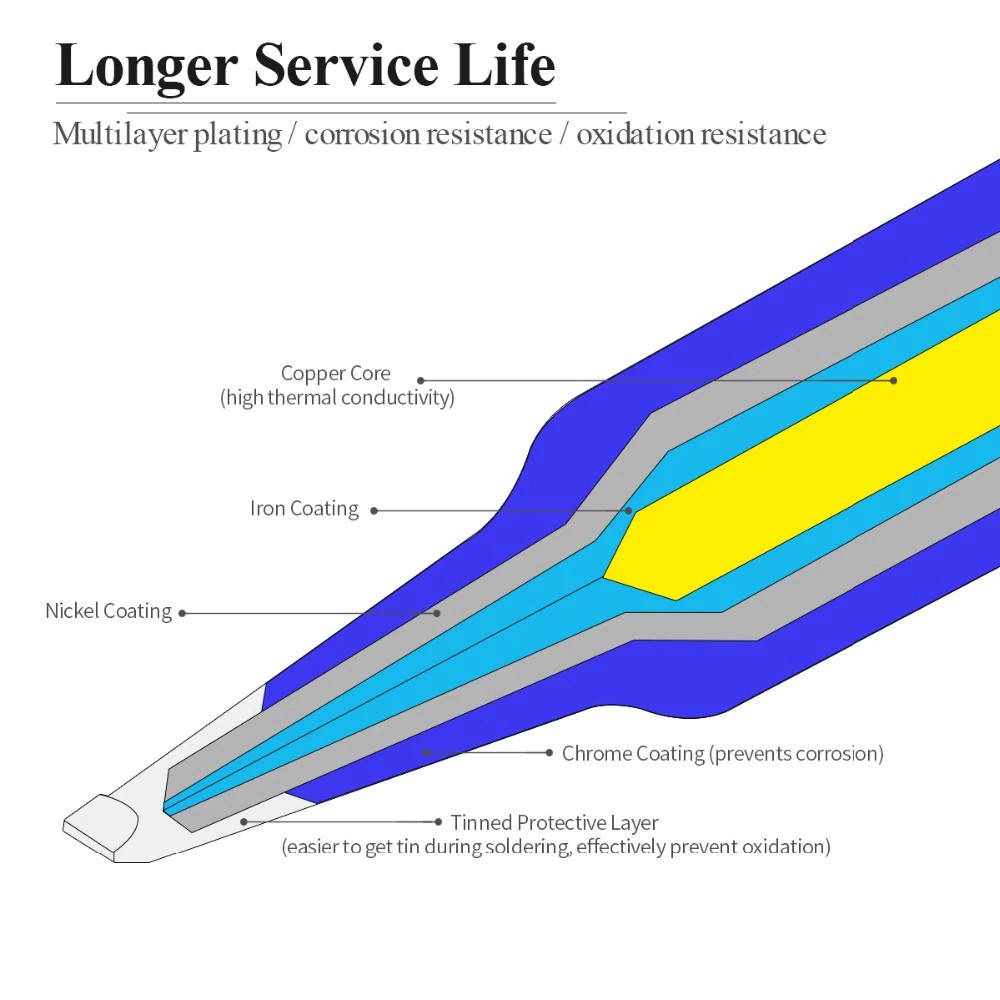 ✔ Độ hút thiếc, bám thiếc tốt.