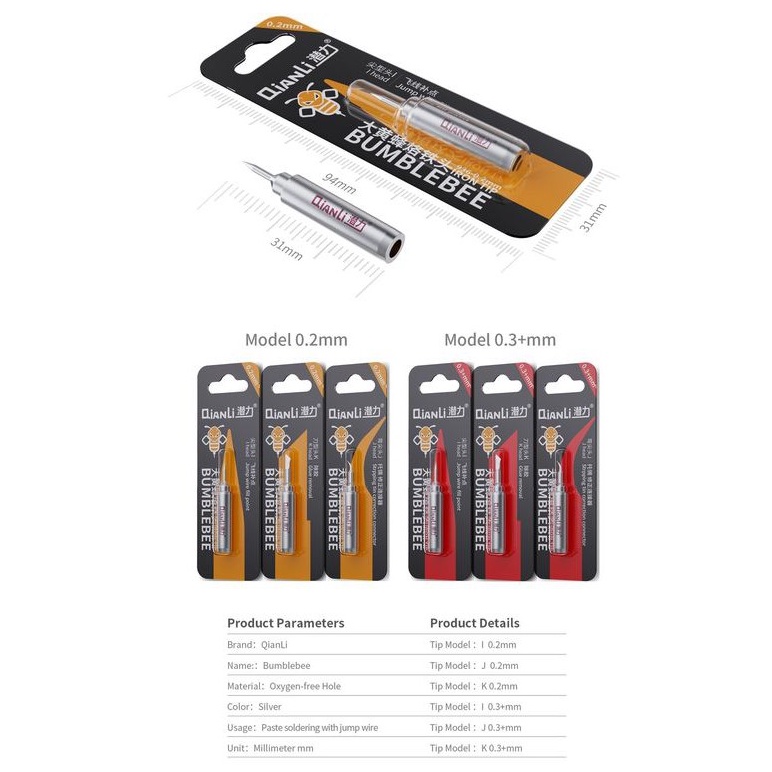 Nhà cửa & Đời sống > Dụng cụ & Thiết bị tiện ích > Dụng cụ > Dụng cụ hàn điện || Mũi hàn Qianli Bumble Bee 936 0.2mm, 0.3mm và 0.4mmCòn hàng