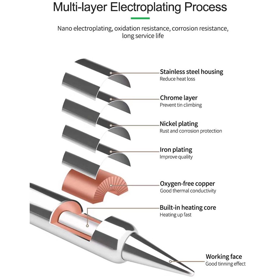 Mũi hàn Relife C210 chuẩn jbcTương thích với các loại máy hàn sử dụng tay T210 T245 JBC như máy hàn JBC, Sugon ST26, X-Soldering
