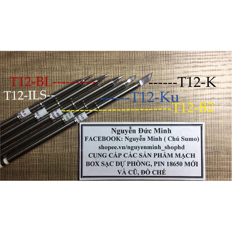 - mũi hàn có 4 loại đầu hàn(mũi dao: T12-K; mũi vát: T12-BC2; mũi hơi nhọn: T12-B2; mũi nhọn: T12-BL) thích hợp cho từng công việc