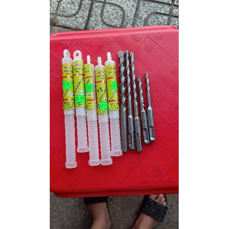 đường kính 6,8,10,12mm Loại Dài 16Cm Chất Lượng CaoBộ 4 mũi khoan bê tông đuôi gài là bộ sản phẩm đạt chất lượng tốt, có thể khoan được các loại bê tông cứng có độ dày lớn.
