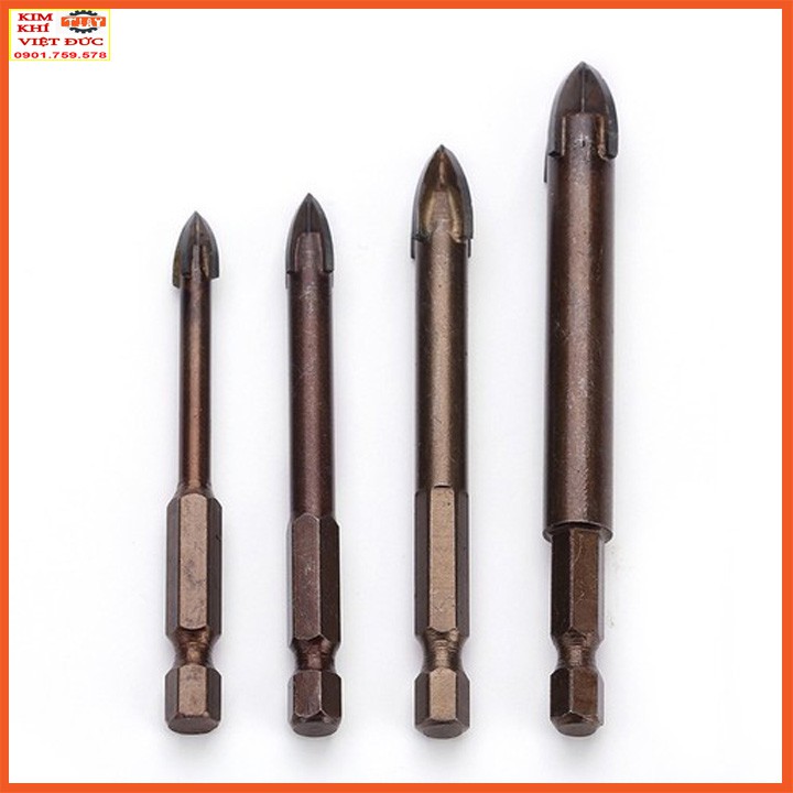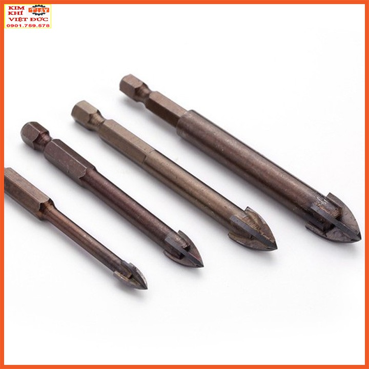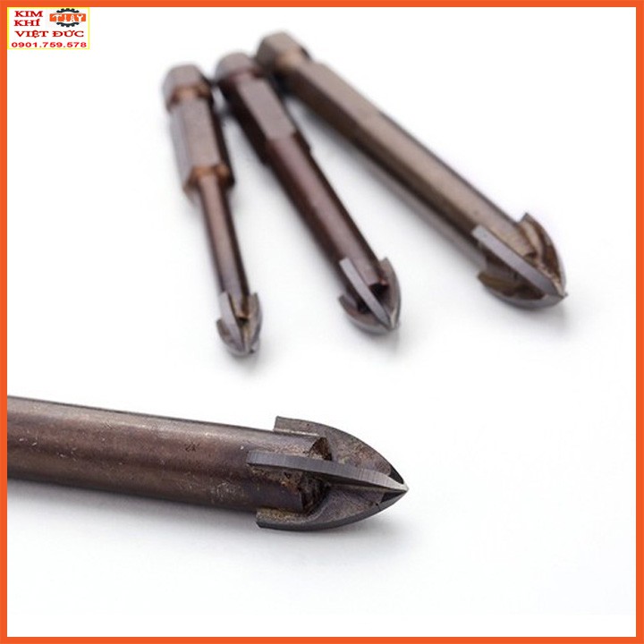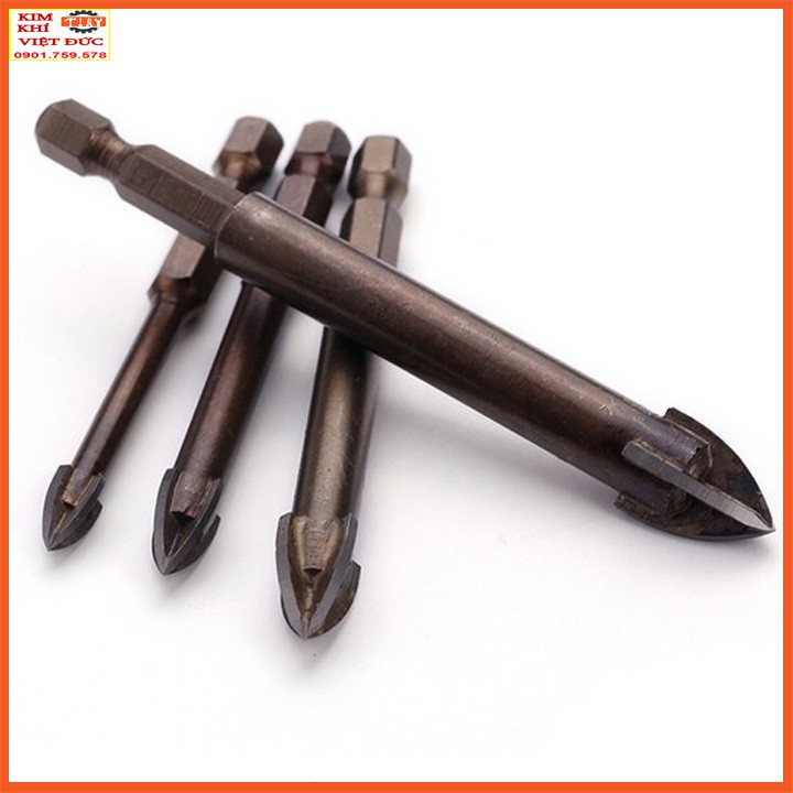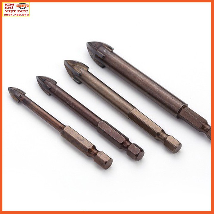 mũi khoan kính, thủy tinh, gạch men, gạch đá hoa chuôi lục giác sẽ có chế độ khoan 4 lưỡi cát nhanh chóng và có độ khoét nhanh và mũi khoan lỗ tròn hơn.