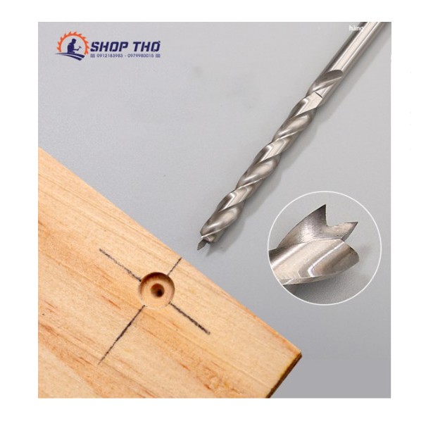 Mũi có định tâm giúp khi khoan không bị trượt, lưu ý khoan chậm để tránh tưa gỗ và bảo vệ mũi khoan