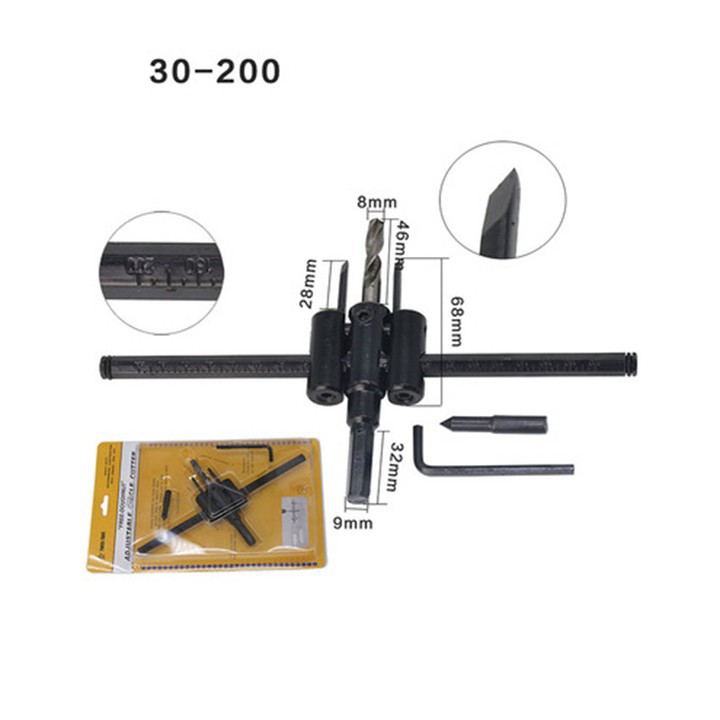 Mũi Khoan Có Thể Điều Chỉnh 200mm Có Thể Điều Chỉnh Máy Bay Loại Gỗ Tròn Lỗ Cưa Cắt Không Dây Dụng Cụ Làm Rau Cau