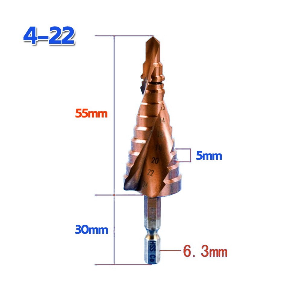 Mũi khoan khoét tháp bước HSS Co M35 phủ Coban TITANIUM CHUÔI lục giác - HÀNG CAO CẤP CHUYÊN THÉP INOX