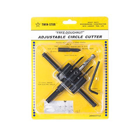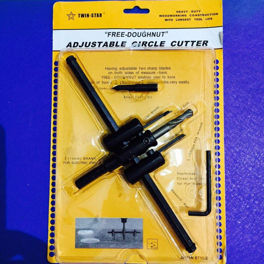 - Được làm bằng chất liệu thép cứng. Mũi khoét bao gồm: 1 mũi khoan làm tâm, 2 đầu khoét nhọn, có thể tăng đưa bằng cách mở chốt hai bên đầu khoét nhọn, kéo hai đầu nhọn theo kích thước lỗ khoét mong muốn. Trên thân ngang có in thang đo với thông số từ 30mm-120mm, với số to dễ nhìn. Khoét được độ dày từ 3mm-50mm.
