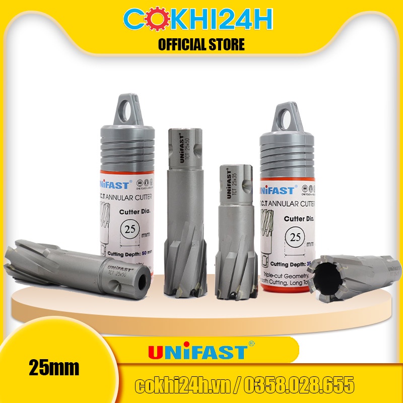 Mũi khoan từ rút lõi phi 25mm Unifast HSS 25x25 / TCT 25x35 / TCT 25x50