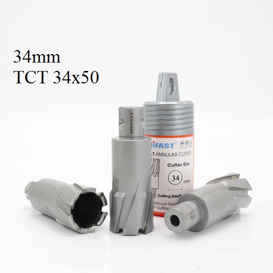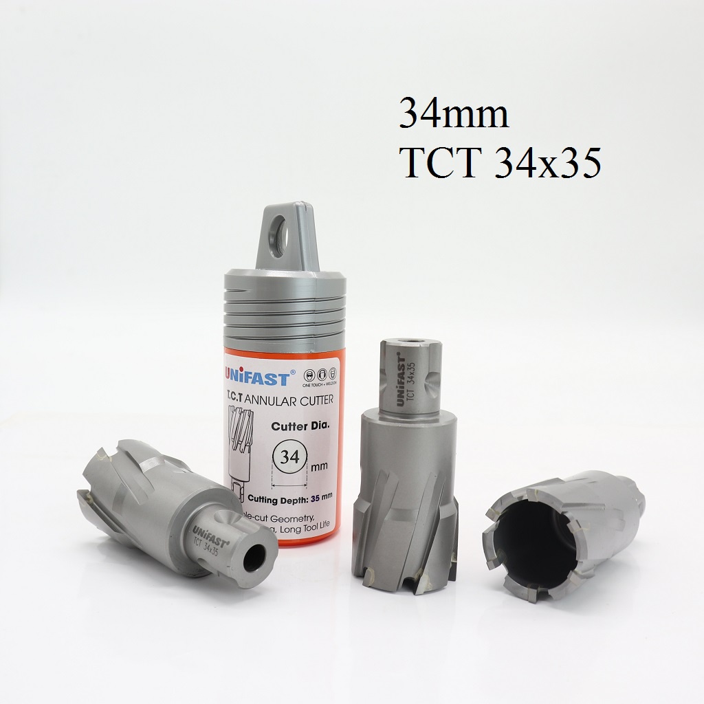 Mũi khoan từ rút lõi phi 34mm Unifast HSS 34x25 / TCT 34x35 / TCT 34x50 là dòng mũi cao cấp sản xuất theo tiêu chuẩn công nghệ của Nhật Bản. Mũi tạo ra đường kính lỗ 34mm, độ sâu khoét tối đa gồm các chuẩn 25mm, 35mm, 50mm, 75mm, 100mm.------------------------------------